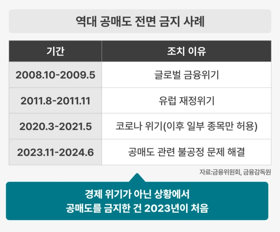 정부는 2023년 11월 6일 공매도를 전면 금지했는데요. 공매도 전면 금지가 이번이 처음은 아닙니다.