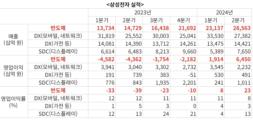 삼성전자 실적 부진의 가장 큰 이유는 바로 DS(반도체) 부문의 부진 때문이었습니다.