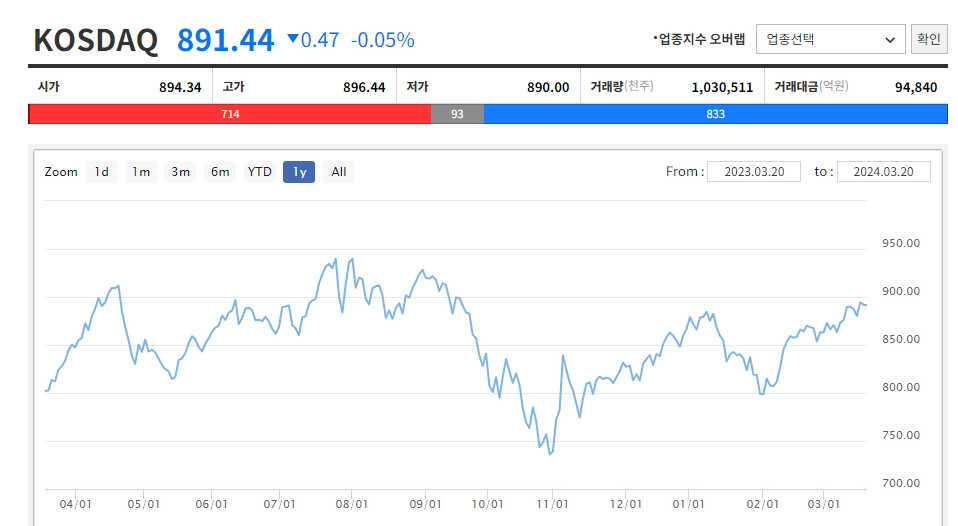 코스닥 지수는 대한민국 중소, 벤처기업을 위한 증권시장인 코스닥 시장에 상장된 기업들의 주식 가격을 기반으로 산출되는 지수에요. 코스닥 지수는 중소기업 및 벤처기업들의 주가 동향을 반영하며, 다양한 산업 분야의 약 1,500개 이상의 기업들로 구성되어 있어요. 중소기업 시장의 건강 상태를 가늠할 수 있는 지표로 활용되고 있습니다.