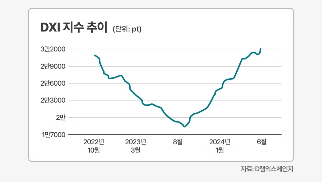 반도체 동향 지표인 DXI지수는 지난 5월, 1년 6개월만에 3만 포인트를 넘었어요.