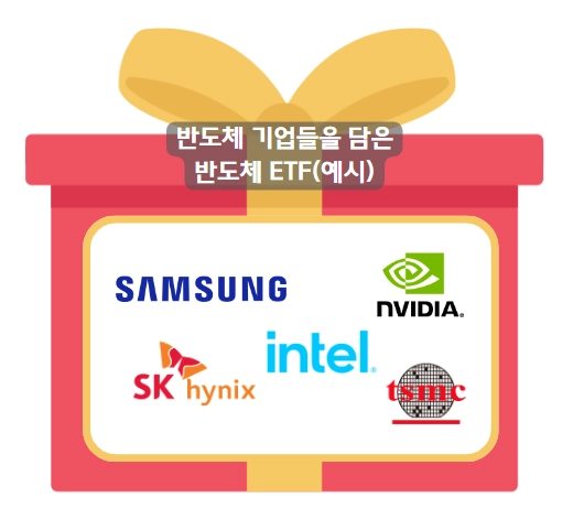 이런 리스크를 줄이기 위해서 특정 기업을 고르기보다는 반도체 산업군에 있는 여러 기업에 나눠서 투자를 하는데요, 바로 이러한 역할을 ETF가 해주는 겁니다.