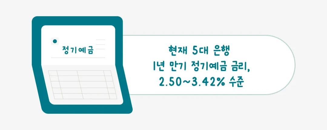 초보자들이라면 정기 예금 수준보다 좀 더 높은 수준으로 설정하는 것을 추천해요. 11월 현재 기준으로 5대 은행 (KB국민·신한·하나·우리·NH농협)의 1년 만기 정기예금 금리는 평균 2.50~3.42% 수준입니다. 목표 수익률을 달성했다면, 매도해서 수익을 확정 지어보세요.
