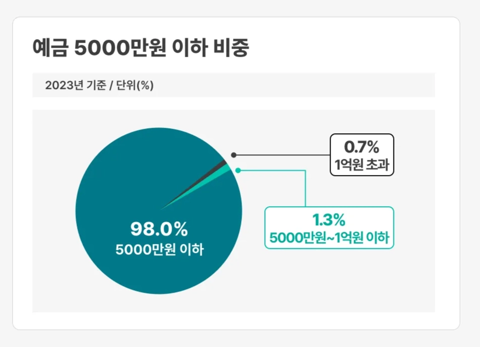 예금보호공사(예보)에 따르면, 우리나라 전체 예금 계좌의 98%는 5000만 원 이하입니다.
